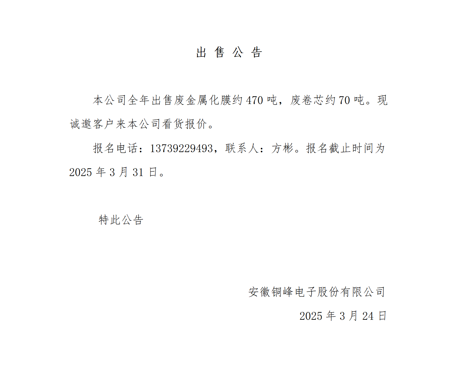 废金属化膜、废卷芯出售公告_01