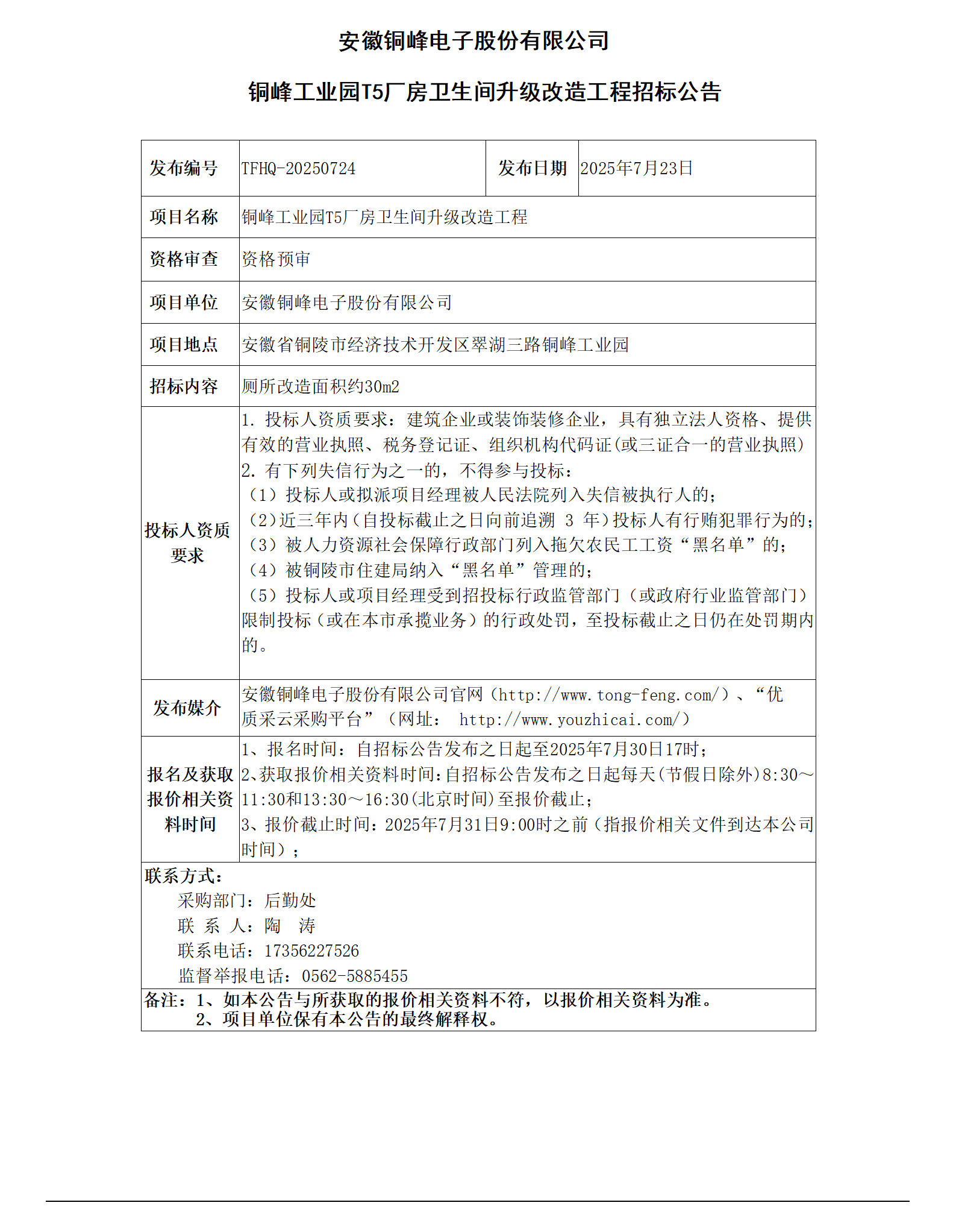 Bevictor伟德 (铜峰工业园T5厂房卫生间升级改造工程招标公告)_01