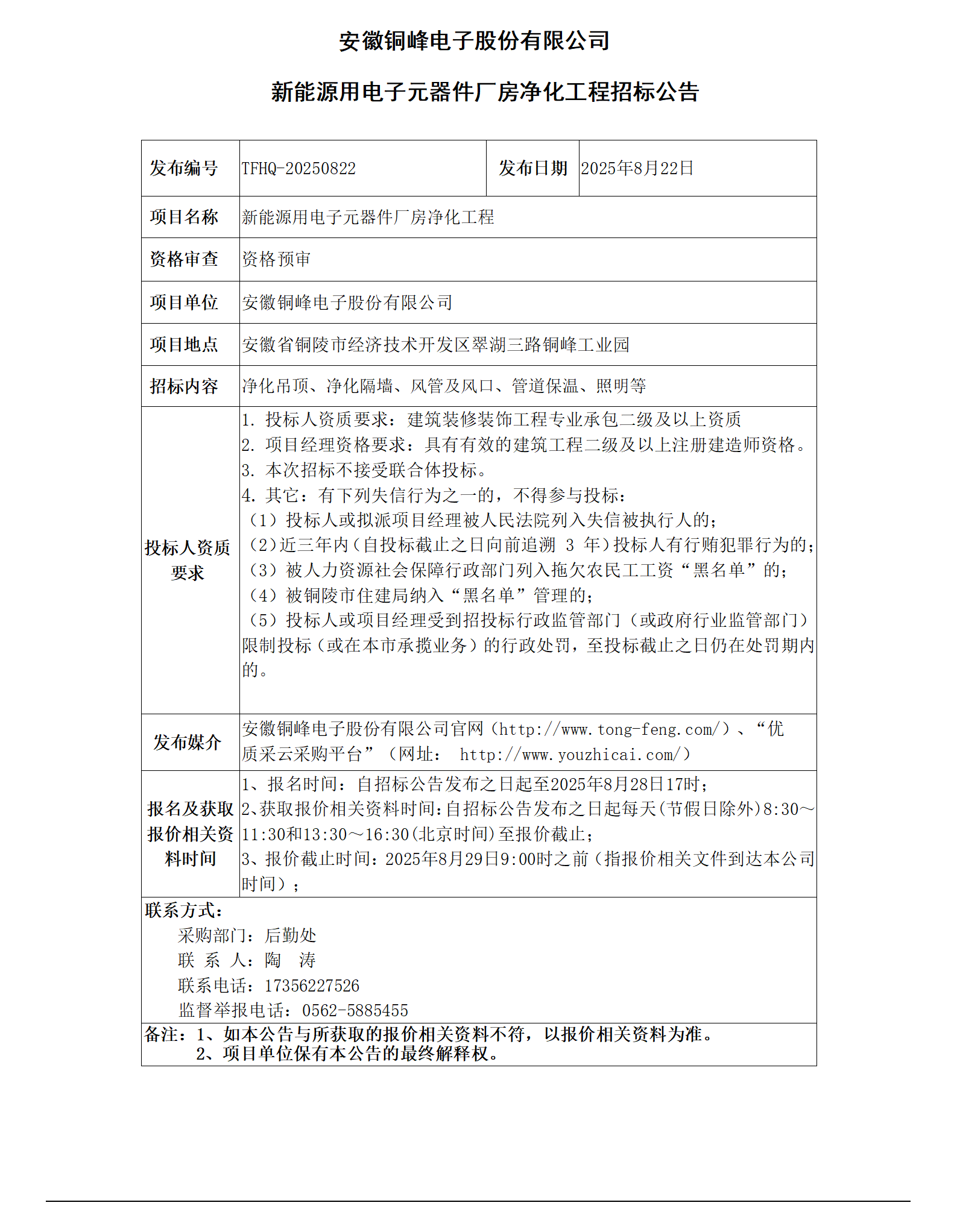 Bevictor伟德 (新能源用电子元器件厂房净化工程 招标公告)_01