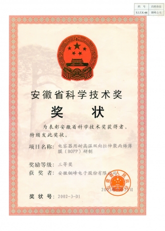 安徽省科学技术三等奖