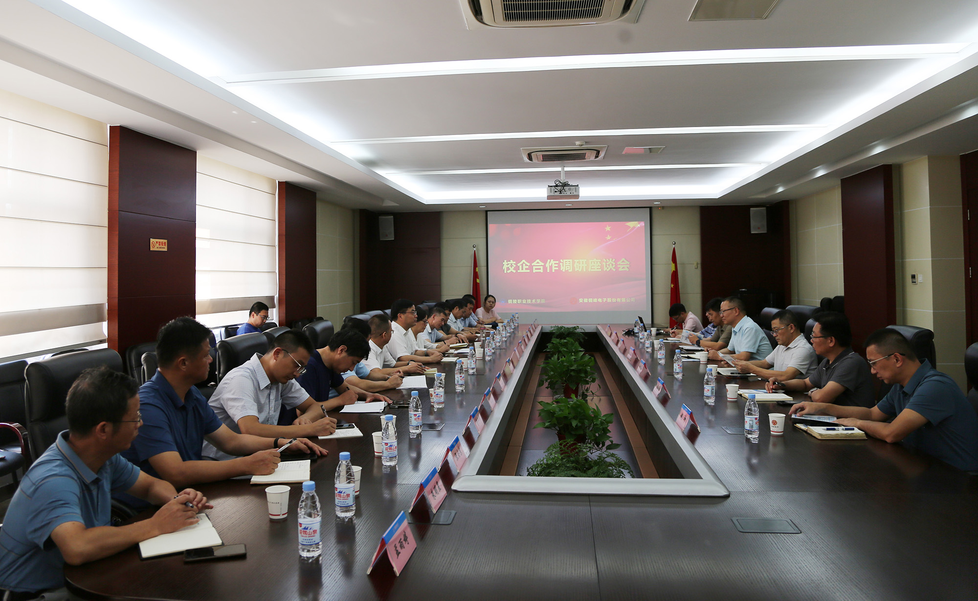座谈会上,储松潮介绍了企业校企合作工作情况和成果经验,并针对技能型人才培养提出积极的意见和建议;学院党委委员、办公室主任蒋洋洋介绍了学院办学情况、专业布局、校企合作以及人才培养特色;公司人力资源处负责人介绍了企业人才招聘、培训实训、技能鉴定等具体需求。