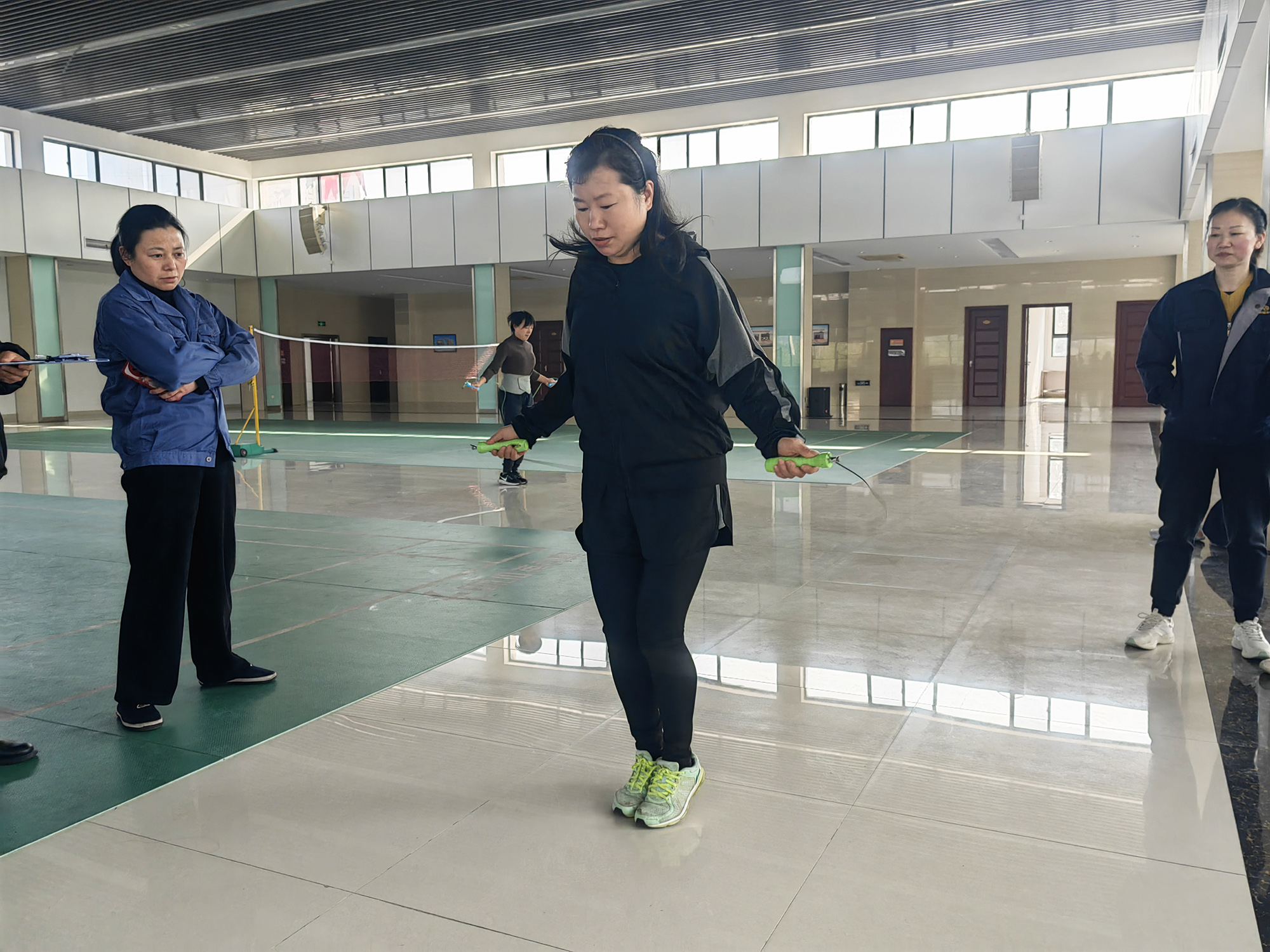 本次“三八节”女工文体活动共设置一分钟单摇、踢毽子、三分钟十人八字跳三个比赛项目,共有各单位选送的80余名女职工参加。按比赛规则,参赛选手要在规定时间内,以个人竞速、集体协作方式完成相应比赛。比赛中大家相互鼓励、相互激励、相互帮助,“跳”出活力,“绳”采飞扬,气氛热烈。选手们有节奏的跳动声、队员们的加油喝彩声,让公司女工们在享受比赛的同时,也进一步砥砺意志,增强团队精神。经过有序角逐,一分钟单摇和踢毽子项目各决出一等奖1名、二等奖2名、三等奖3名,三分钟十人八字跳项目分别决出一、二、三等奖各1名。