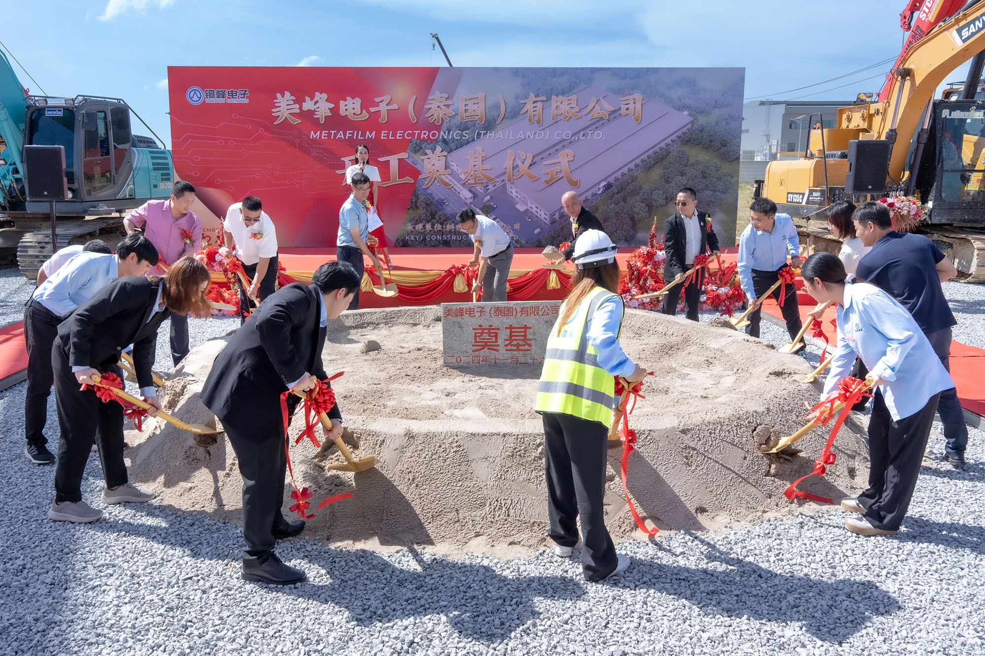 美峰电子(泰国)有限公司的开工奠基,标志着项目建设正式进入新阶段。下一步,公司将科学组织,加快项目建设进度,确保项目按期建成达产,早日发挥项目效益,努力为国际市场提供高质量的产品与服务,并为泰国当地的经济发展、创造就业及地区可持续发展贡献力量。