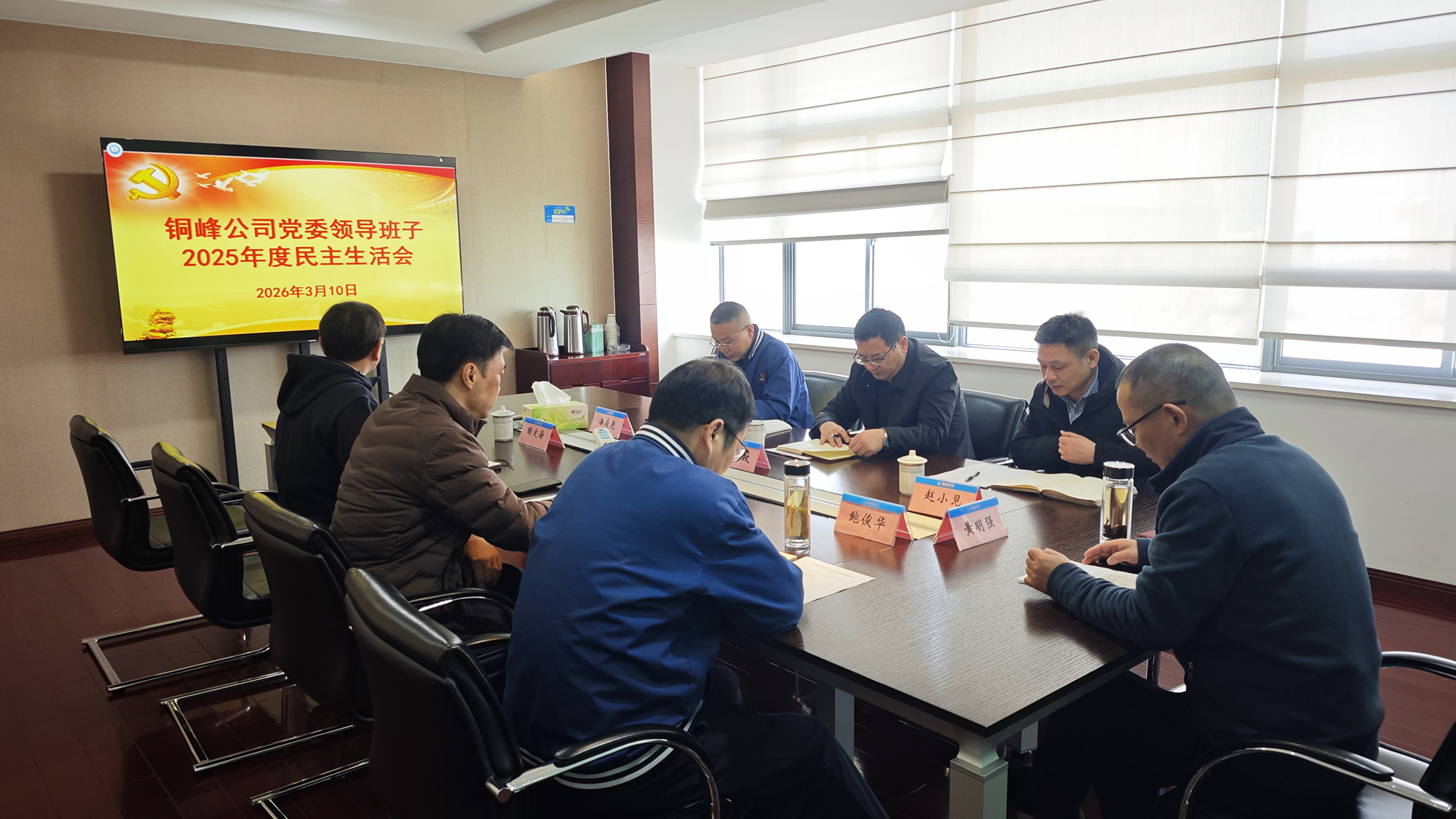 3月10日下午,公司党委在办公楼六楼会议室召开2025年度民主生活会。公司党委书记、董事长黄明强主持会议并作总结讲话,党委班子成员参加会议。